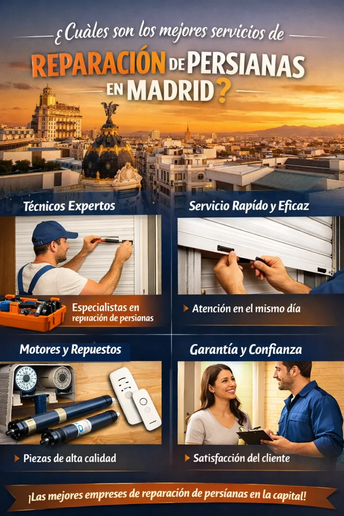 Las persianas son un elemento esencial en cualquier hogar o negocio en Madrid. No solo aportan privacidad y control de la luz, sino que también ayudan a mejorar el aislamiento térmico y la seguridad. Sin embargo, con el uso diario es común que sufran averías. Por eso, encontrar los mejores servicios de reparación de persianas en Madrid es clave para garantizar un funcionamiento óptimo y duradero.